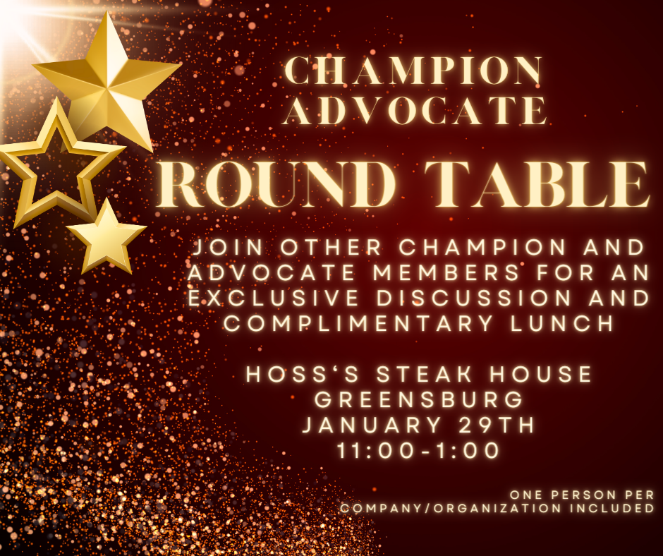 An exclusive invite for Champion and Advocate members to discuss the needs of Westmoreland County businesses.