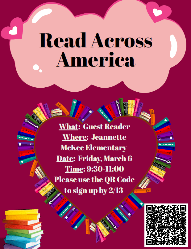 Guest Readers are being requested! Please use the QR Code on the flyer to sign up by 2/13Images