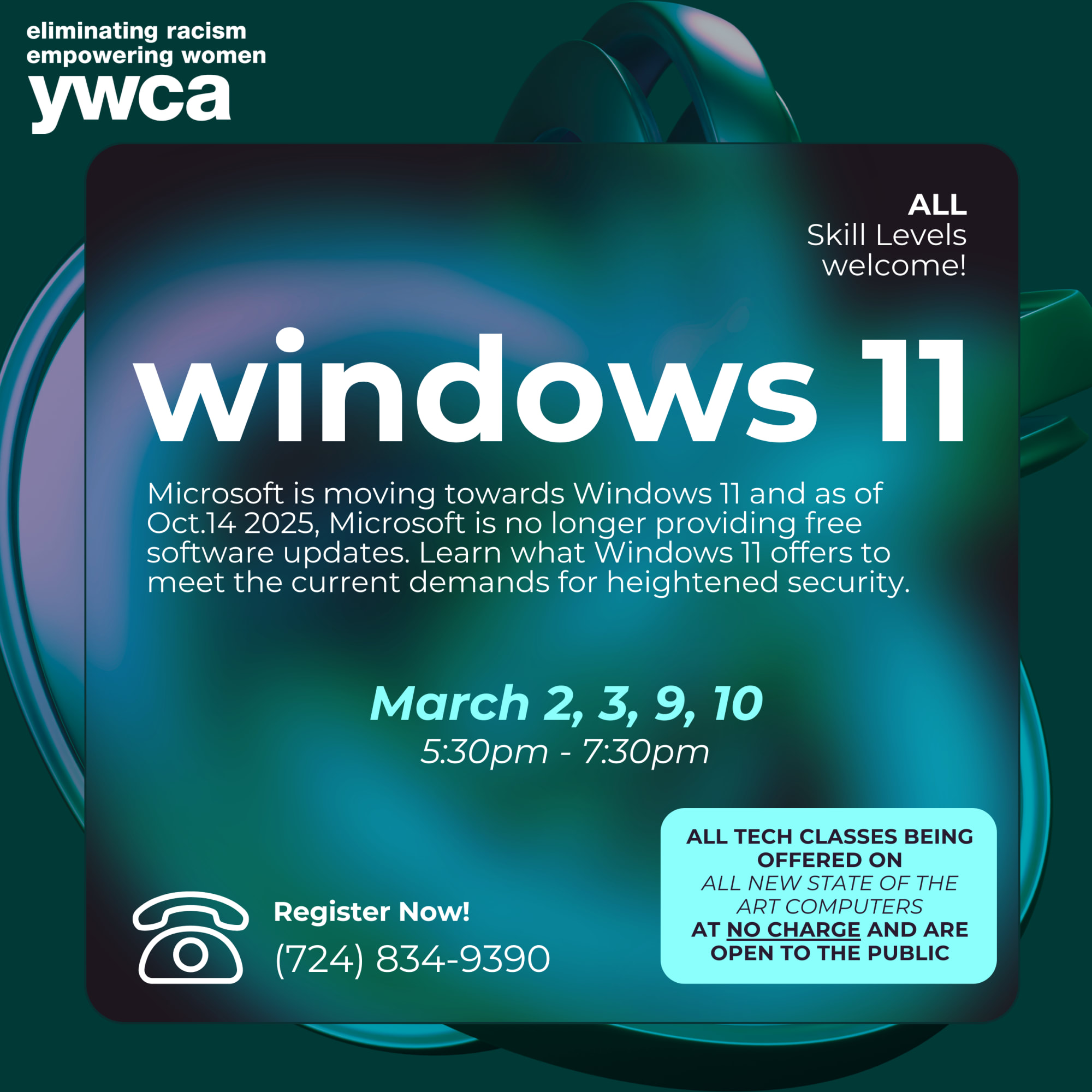 All YWCA Technology Classes Being Offered on State-of-the-Art Computers at NO CHARGE AND ARE OPEN TO THE PUBLIC!